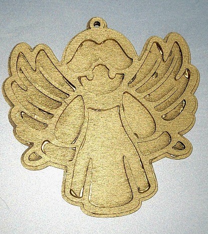 Gold Painted Wood Christmas Angel 4″ 2 layers.