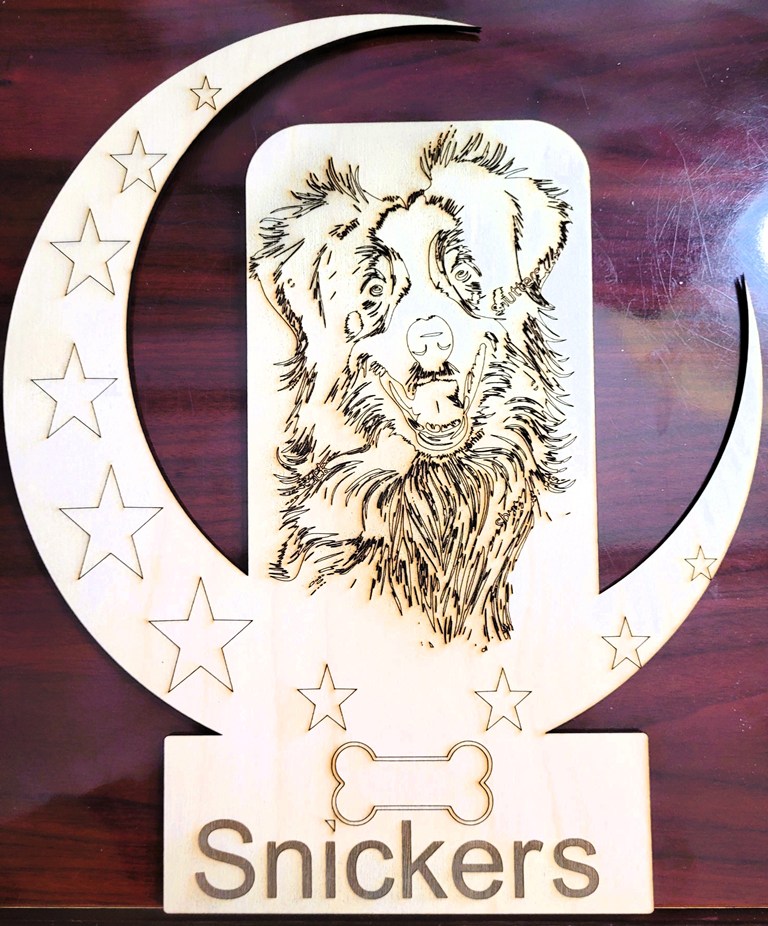 Wood Custom Pet Art Example. Prices start at $40 and up. We can customize Pet name and Dog or Cat Breed. Please contact us for more information.