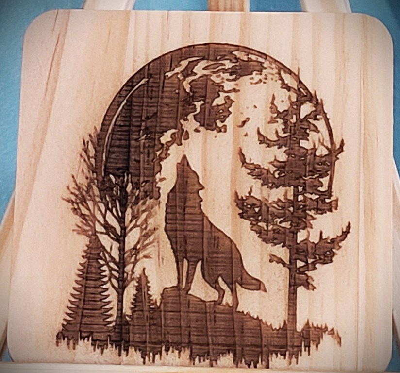 Wood Square Woodland Wolf 4″ Coaster. Perfect for your house or Cabin. Have foam pads to protect your furniture from scratches.